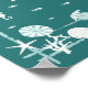 Stylish teal blue poster of a relaxing underwater seascape. Sea turtles, starfish, seahorses, fishes and seashells in a beautiful ocean scene.