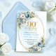 Stylish Bohemian Blue Floral Greenery 90 Birthday Invitation