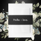 The Stylish Boho Black & White Custom Wedding Invitation Belly Band adds a touch of modern elegance to your wedding stationery. Featuring a striking black and white design, this belly band wraps around your invitations, showcasing your names or initials in a beautifully crafted, personalised style. Perfect for couples who love a chic, bohemian vibe, it not only keeps your invitation suite organised but also reflects your unique personality and love story, making your special day even more memorable.