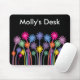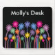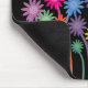 Black mousepad with stylish colourful symmetrical cartoon flowers illustration. The background colour and text can be changed (or removed) by clicking on the “Customise it” button – there´s lots of colours and fonts to choose from. If you need any assistance in customising your product please contact me through my store and I will be more than happy to help.