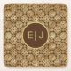 Stylish Brown & Gold Dahlias Pattern Monogram Square Paper Coaster