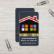 A modern professional, creative card. Design features a creative rooftop building with colourful windows. Your prestigious name lie in a golden stripe with the contact details and a slogan caption which you can change, near the base.