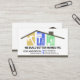 Cover features a building rooftop with handyman tools in their respective coloured panels. The tools may represent some of the services that you might offer e.g. the hammer for home repairs, the brush-ladder for painting and the shovel-trowel-fork for landscaping, gardening. Below this design lies your business name. A simple vertical line demarcates your prestigious name and job title on the left against the contact details which are houses in their respective buttons. A dark grey stripe encapsulates the base.