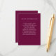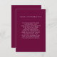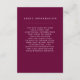 This timeless guest information insert card features a deep shade of burgundy/purple. You can use these cards to include information about your wedding reception, driving directions, accommodations, and anything else you need your guests to know!
