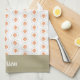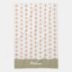 Burnt orange emblem inside of a dotted green circle in a repeating pattern on a white background. Personalise on one end, inside of a solid block of colour.