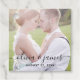 This photo wedding favour tag features trendy calligraphy script in black for the couple's names. Favour tag has an editable background colour (click customise to change) back side.