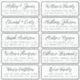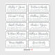 Easy to personalise, names and addresses / individual wedding address label stickers for guest invitations. These chic, modern and stylish wedding address labels feature your wedding guest names in off-black elegant handwritten script calligraphy on a white background. Simply add your individual wedding guest names and address. Exclusively designed for you by Happy Dolphin Studio.