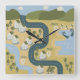 Cartoon map in flat style drawn with landmarks, mountains, road, sea, river, forest and houses