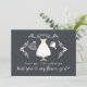 Contemporary "Will you be my flower girl" card featuring a wedding dress, veil, flowers & shoes with a pretty hand lettered font set on a modern black chalkboard background.