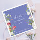 Raise a toast to retirement with our elegant napkins! Featuring the text 'Cheers to Retirement,' these napkins are a perfect match for celebrating a lifetime of dedication and achievement. Adorned with a stylish floral theme, including stunning tulips and delicate lavender blue and white wildflowers, all set against a stylish lavender blue background, these napkins add a touch of sophistication to any retirement party. Customise them with your own text for a truly personal touch. Whether honouring a career milestone or celebrating a special occasion, these napkins are a beautiful way to commemorate the moment. Order now and make your retirement celebration unforgettable!