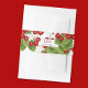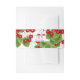 This invitation belly band has a simple design featuring a modern red script with customisable initials of the bride and groom and the wedding date, all on a stylish vintage cherry pattern background.