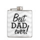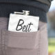 The flask itself is fine. It’s a cheap flask, obviously bought in bulk, however am prepared to overlook that. Given that it is a personalized item, I would have liked to have seen gift boxing instead of the generic packaging. Terrible printing, and/or quality. It’s a cheap, tacky vinyl. It is not cut straight and is also applied in a way that it is overhanging the bottom, causing the glue to catch on items and it will eventually roll and tear, damaging the wrap.