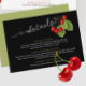 This chic vintage enclosure card features a charming illustration of red cherries with green leaves, all on a sleek black background. It’s adorned with modern, sophisticated calligraphy for the word "Details" and a classic white script to display your wedding information. The back of the card has a clean, elegant sage background. This design combines timeless style with rustic elegance, making it ideal for couples looking for a refined touch to their special day. The text is fully customisable, so you can easily update it with your own details or remove any unnecessary information. Be sure to explore our Cherry Wedding Collection for matching products to complete your look!