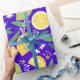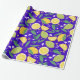 Stylish Citrus Lemon Botanical Pattern in Blue Wrapping Paper