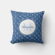 Stylish Classic Blue Monogrammed Name Heart Dots Cushion