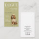 The front side features an elegant Cocker Spaniel illustrated in a stylish coat, cap, and monocle, set against a soft sage green (salvia) background. The design is styled like the cover of a luxury dog magazine, giving your brand a fashionable and memorable presence. All headline-style text on the front is fully customisable, allowing you to add your name, business name, and pet service type, such as dog grooming, pet sitting, or dog walking. The magazine title and cover text can also be edited to match your brand identity.