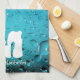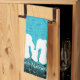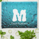 Personalise hand tea kitchen towel with your initial and name. ©PLdesign photo of water drops in blue colour. Stylish and refreshing! Perfect gifts for spa, life guard, swimmer or swimming coach.