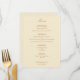 Stylish Cream Beige Wedding Menu, please personalise as required using the online Personalisation template before ordering. Once you have entered your wording onto the Personalisation template, should you find that you need to adjust the positioning of the text then please use the "Edit using Design Tool" option (the button is available by scrolling down in the Personalisation template). An elegant menu featuring stylish text in a golden shade of beige (faux gold / gold look) on a cream background.