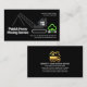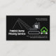 An all black cover features a creative home moving crane that is lifting your business name. Near the top of the card is a slogan caption option for you to publicise your services. Southwards to the base lies the contact details.