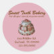Pretty bakery product stickers done in a pink round shape, with graphics of a pretty whimsical custom cake, in the middle. Brown text is fully customisable to suit your business needs. Great advertisement and a nice finishing touch to your bakery boxes.