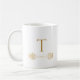 Create a unique, elegant monogrammed gift mug with my one-of-a-kind hand drawn golden toned design. Personalise this mug with an initial and name for a simple yet meaningful keepsake coffee mug. Customise this coffee cup with other colours if desired. Great for the holidays. Fill with sweets or cocoa or cookies for an inexpensive yet beautiful Christmas present. Red and golden two toned front and back gift mug.
