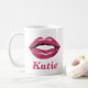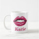 Add a pop of fun and personality to your morning routine with this custom name mug featuring a stylish pink lips illustration and your personalised name underneath. Whether it's for a friend, family member, or a special treat for yourself, this unique coffee cup makes a chic statement. Ideal for birthdays, anniversaries, or just because, this durable mug is microwave-safe and dishwasher-safe, making it both fashionable and practical. Customise it with any name to create a one-of-a-kind gift that’s perfect for her!