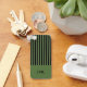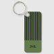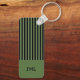 Stylish personalised keychain features dark green and black stripes. Customise with name or monogram at bottom