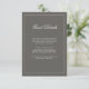 This classic, timeless guest information card has a dark shade of grey as the background, with white text and frame. You can use these cards to include information about your wedding reception, driving directions, accommodations, and anything else you need your guests to know. This card is made to coordinate perfectly with our deep grey wedding collection, which includes mix and match shades of grey that all work beautifully together.