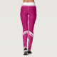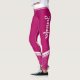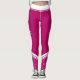 These dark magenta modern workout leggings feature an elegant white floral design on the ankles and calves and white stripes on the waistband.