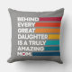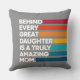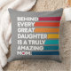Elegant Mothers day Throw Pillows featuring a cute saying that reads "Behind Every Great Daughter Is A Truly Amazing Mum."