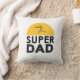 Happy Father's Day Modern Design and Wishes text. Trendy Beautiful Stylish Design "SUPER DAD" and Gold Sun, Heart shape Grunge Texture, Double sided Design with Wishes text template: "Dad I wish you happiness I send you love, I wish you blessings from above. Happy Father's Day!" Text template. Personalise them by adding your wishes text and Names, slogan for Home > Home Décor > Pillows & Poufs > Throw Pillows. Gifts for Him, man, Father, Grandfather, Grandpa, daddy, Birthday, Holiday, Anniversary, Family Party.