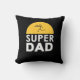 Happy Father's Day Modern Design and Wishes text. Trendy Beautiful Stylish Design "SUPER DAD" and Gold Yellow Sun, Heart shape Grunge Texture, Black background. Double sided Design with Wishes text template: "Dad I wish you happiness I send you love, I wish you blessings from above. Happy Father's Day!" Text template. Personalise them by adding your wishes text and Names, slogan for Home > Home Décor > Pillows & Poufs > Throw Pillows. Gifts for Him, man, Father, Grandfather, Grandpa, daddy, Birthday, Holiday, Anniversary, Family Party.
