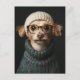 A cute dog wearing glasses, a knit beanie, and a turtleneck sweater, exuding a scholarly and fashionable vibe.