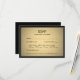 Compliment black and gold party invitations with elegant RSVP response cards. All wording on this template is simple to customise or delete as needed. Card includes meal choices and option to reply via website or email. The black and gold design features a faux foil background and vintage art deco inspired typography. This announcement note card is a stylish way to request friends and family to RSVP to your upcoming special day celebration. Please note that gold is printed colour, not metallic foil.