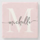 Stylish Elegant Blush Pink Monogram Name Script Stone Coaster