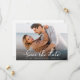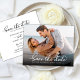 Elegant Stylish Script Modern Photo Wedding Save The Date Cards. Features one full photo and a fashionable photo overlay calligraphy hand-lettered swash tail font script in classic black and white capture the essence of contemporary elegance. Easily customise each card by incorporating cherished wedding details and a picture, offering a refined and sophisticated means to announce and celebrate your extraordinary day.