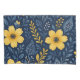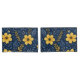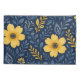 These beautifully arranged bedding pillow cases showcase a classic Mediterranean botanical flower design, featuring a vibrant pattern of yellow, orange, and dark blue flowers and leaves. The design is ornate, stylish, and eclectic, making it appealing to artistic crafters and enthusiasts of vintage retro styles. It is available on a variety of modern decor products such as fleece blankets, lamps, and bedding.
