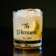 Chic monogram whiskey glass with your family name in a stylish signature script and your wedding date or year established in simple typography.