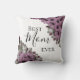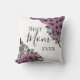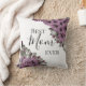 A stylish lavender flower pillow with the caption "best mum ever" on a simple white backdrop creating simplistic chic vibes. Can be customised with your own text or name.