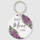 A stylish lavender flower keychain with the caption "best mum ever" on a simple white backdrop creating simplistic chic vibes. Can be customised with your own text or name.