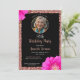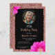 Sophisticated style with pink flowers and rose gold glitter highlights, including a personalised photo and key 90th birthday information.