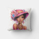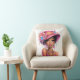 Stylish Floral Hat Woman Vibrant Portrait Art Cushion