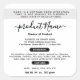Florida Cottage Law Label in a modern black and white design with elegant calligraphy font, space for your business name, address, product name, ingredients, and allergens. Please be sure to edit all text to suit your needs and be compliant with your local food Cottage Law regulations. Each state and country has its own specific rules, the placeholder text is a guide only. Use these bakery stickers to create branded food license ingredient labels for your homemade food business.