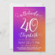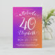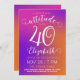 This colourful 40th birthday invitation card has a stylish feminine design with a modern bright pink to orange gradient and elegant customisable texts.