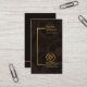 Overleaf, in a dark brown cover, the details are located at the centre. At the top is the gold logo followed by the contact details and a slogan option. The business URL is located near the base of the card.