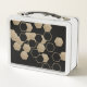 stylish geometric black and gold hexagon pattern fashion accessories. Modern chic minimalist honeycomb pattern accessories.
