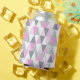 Stylish pink and grey geometric patterned can cooler. Rows of triangle shapes in shades of grey, pink and textures. Trendy, colourful and fun.