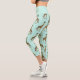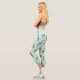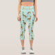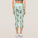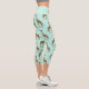 A stylish design, featured here are capri leggings with golden giraffes on a mint background. The waist has a mint background with a brown cursive text that you can customise. Place your order today!