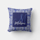 Elegant blue initial monogram Pillow. This blue design features your monogrammed initial and last name in light grey modern typography printed on a patterned geometric blue grey background. This trendy elegant design is perfect for your bedroom, family room or living room. Personalise this stylish pillow with your family's monogrammed initial and last name to create your own custom throw pillow. You can change all text colours and fonts, click to customise further underneath the text customisation area this will take you into the design tool. A unique gift for birthday, holidays and any special occasion. Whether for valentines day, Christmas or as a gift in general it makes a great gift idea