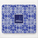 Elegant blue initial monogram mousepad. This blue design features your monogrammed initial and last name in light grey modern typography printed on a patterned geometric blue grey background. This trendy elegant design is perfect for your bedroom, family room or living room. Personalise this stylish pillow with your family's monogrammed initial and last name to create your own custom throw pillow. You can change all text colours and fonts, click to customise further underneath the text customisation area this will take you into the design tool. A unique gift for birthday, holidays and any special occasion. Whether for valentines day, Christmas or as a gift in general it makes a great gift idea